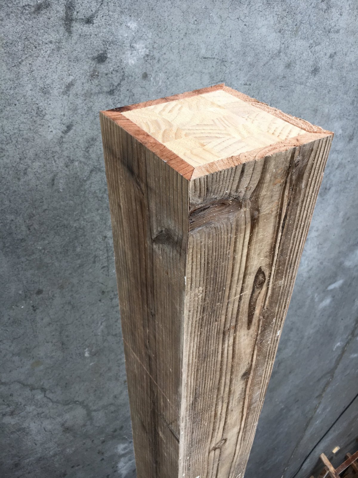 そんな時に ユーズドプレーンの板を4面張って 柱を作りました