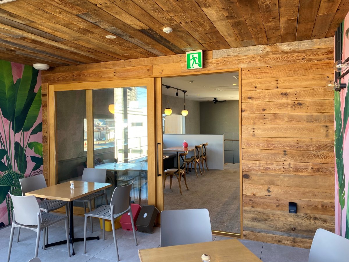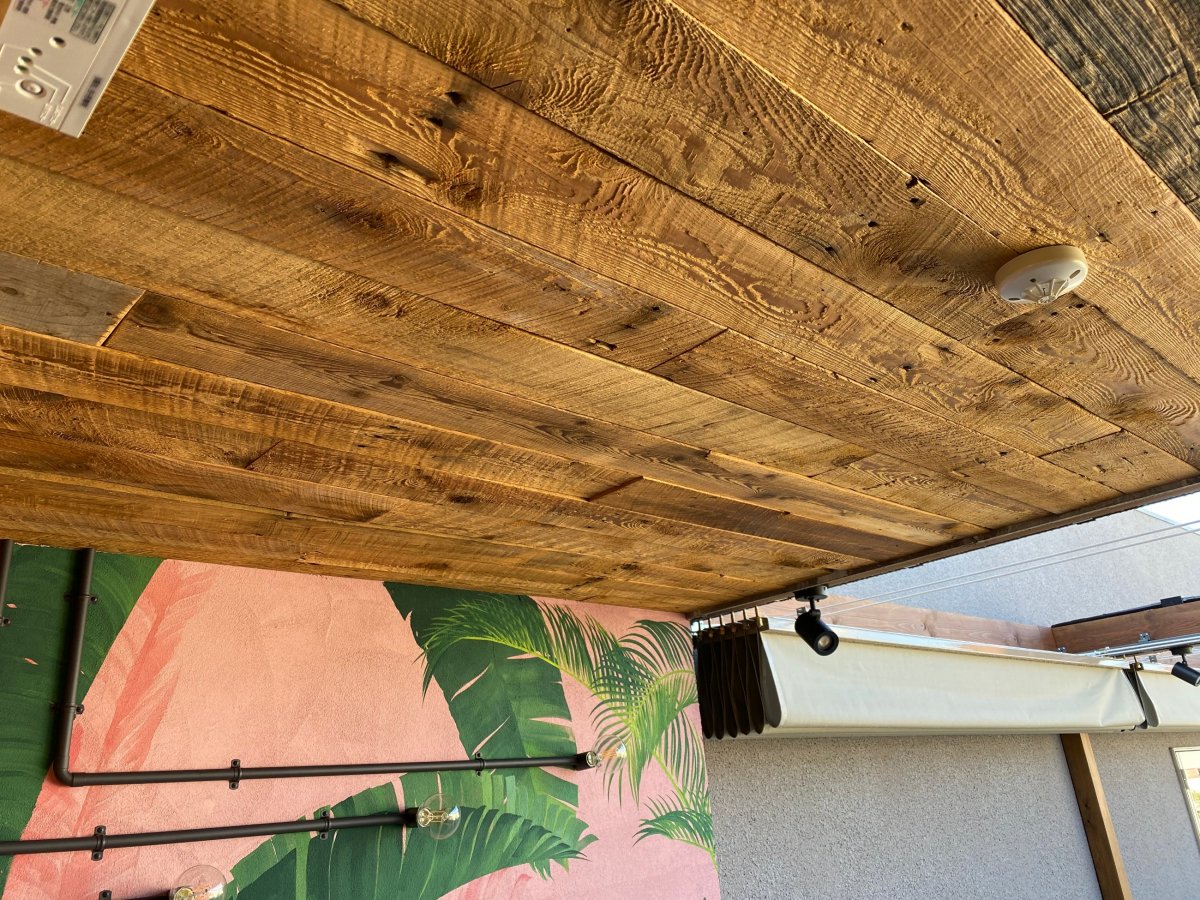 使っていただいたのは 2階のテラス席の 軒天井と外壁部分です
