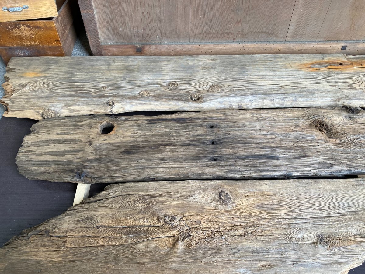 今回の舟板は、びわ湖の田舟の一部で、あまり大きいことはないですが、お店の看板や花台なんかにいかがでしょうか?
