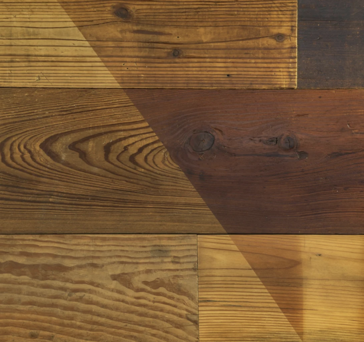 一つひとつに異なる木目・色合い・傷があり、それらが融合しているのが古材です。