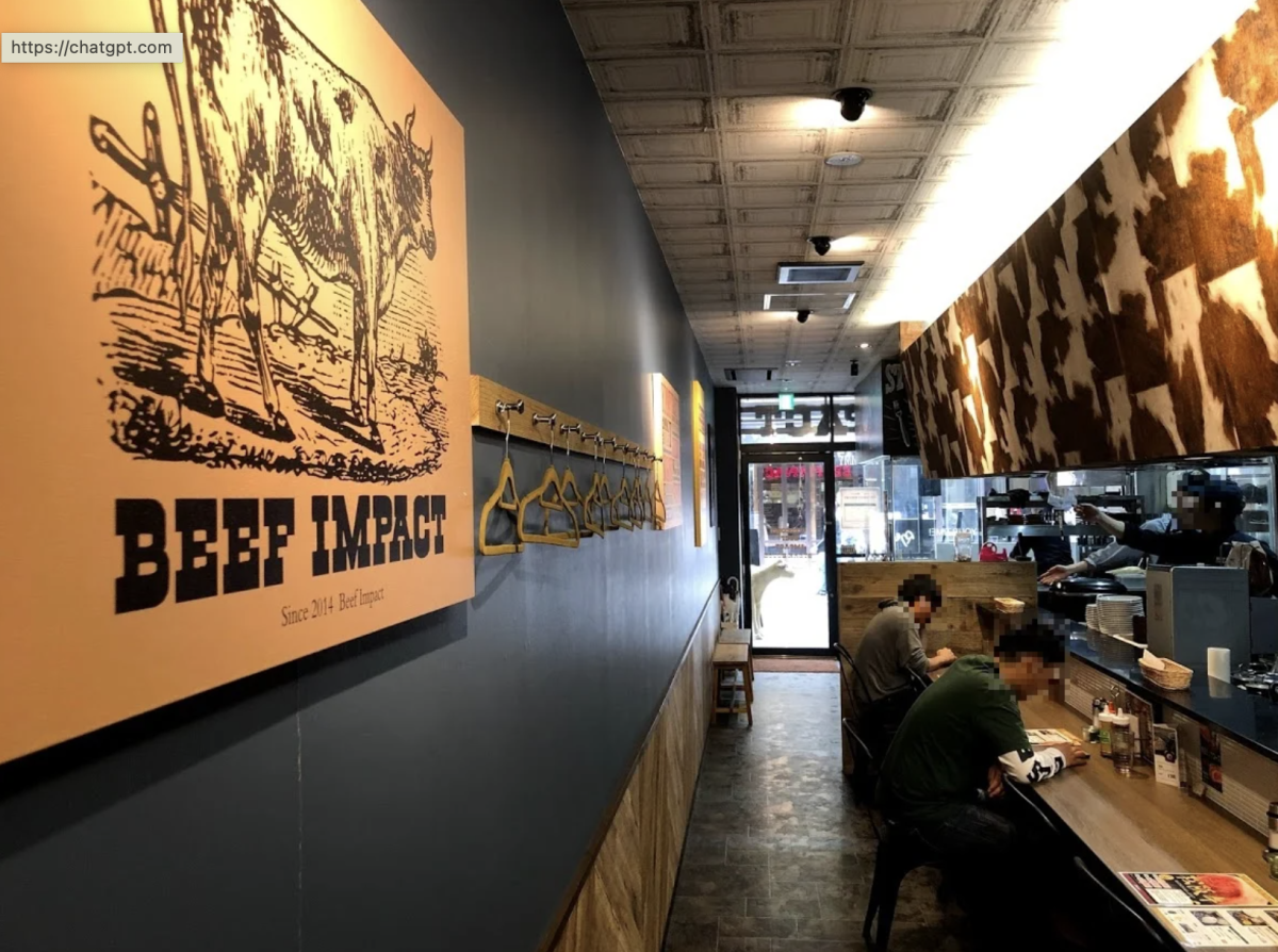 札幌市で人気を集めるステーキ店「ビーフインパクト狸小路店」様では、古材日和で整備された古材足場板(商品名:ユーズドプレーン)を店内にて活用いただいております。