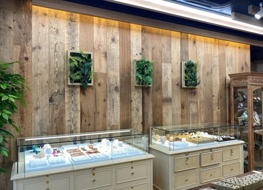 例えば西海岸風のバーガーショップや本格的な和食店では、壁一面に古材を貼ることで、オープン直後から「長年愛されてきた名店」のような風格を出すことができます。