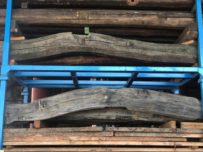 丸太は国産古材でもっともポピュラーな素材です。形状や表情は千差万別、スラッと穏やかなものもあれば曲がりくねっているもの、凹凸のないプレーンな表情のものもあれば大工さんが刻んだチョウナ模様が入ったものなど、1本1本それぞれが人間のようにあふれる個性をもつまさに古材らしい古材です。