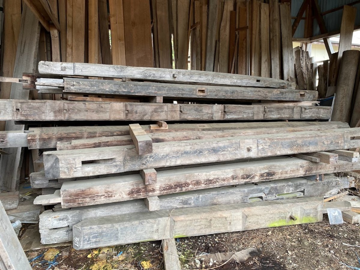 山形県からは杉の古材で倉庫の梁や柱に利用されてました。