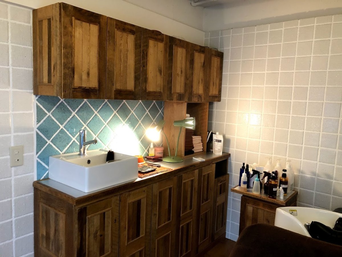 こちらでは内装の一部にUSボードブラウンを使っていただきました。