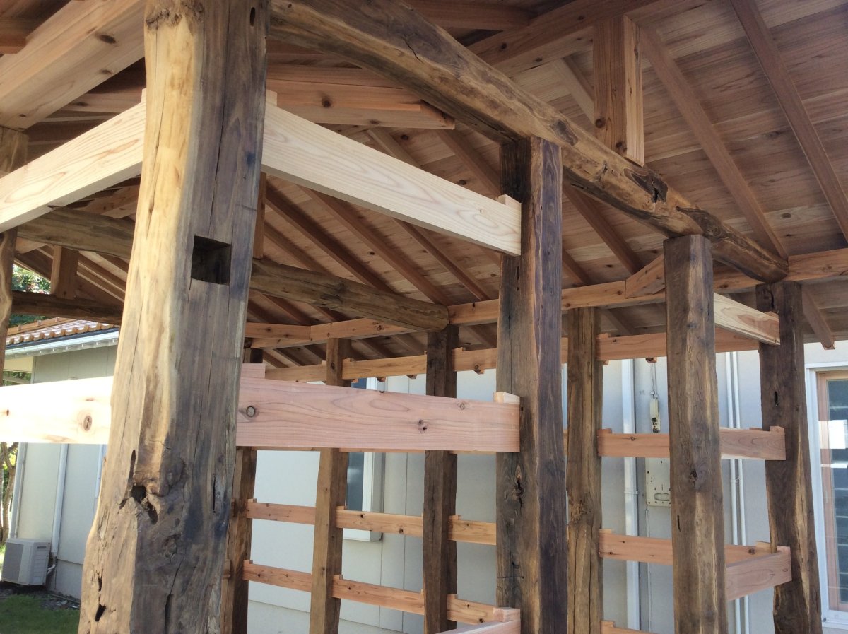 古材以外の杉材や破風板の欅が経年変化し色あせてくるころが本当の完成品!