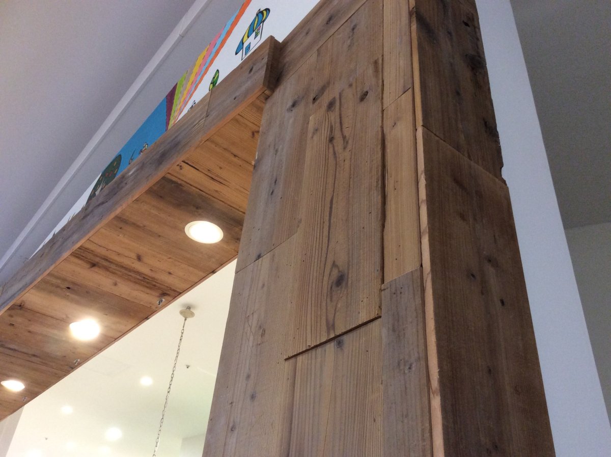 今回こちらの天井・壁面ファサード部分に古材日和グループオリジナル板材「ユーズドプレーン」不燃タイプをご採用いただいております。
