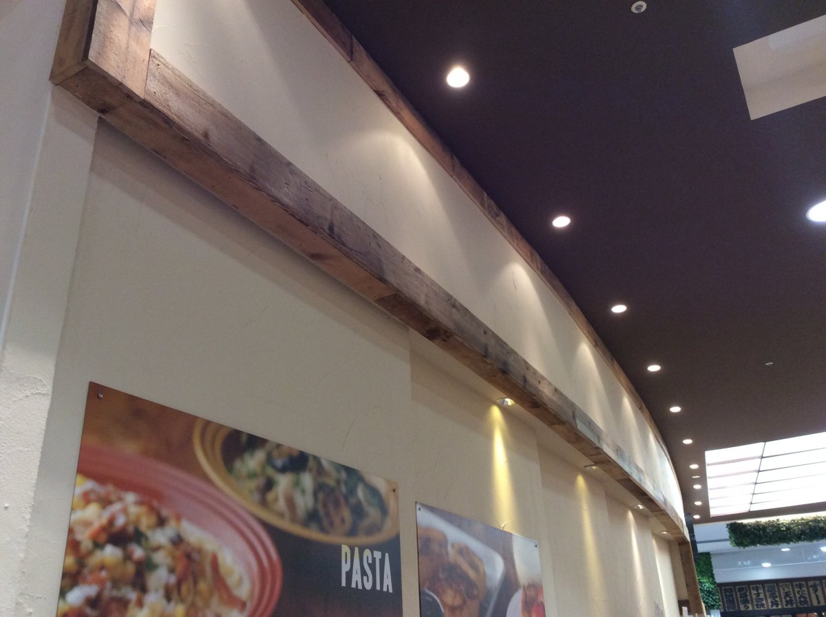 こちらは看板サイン飾りと店内の壁面飾りに北米産の最強古材「USボード(バーンウッド) ブラウンタイプ」をご採用いただきました。