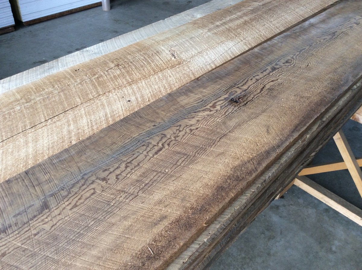 納屋や倉庫の内部から採取された古材は、ノコ目跡や当時の風合いが100年以上経過した今でもそのまま保たれており、当時のどこか懐かしい温かみのある素材感がとても人気の板材です。貼りあがった時の存在感は抜群です。古材好きが最後に必ず行きつく商品としても知られています。