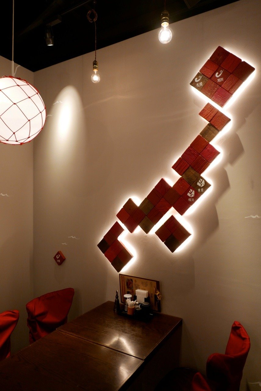 お店のイメージに合わせたカラーリングと背後の間接照明がとても面白いですね。