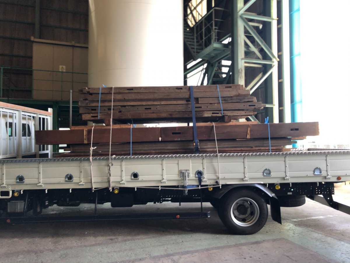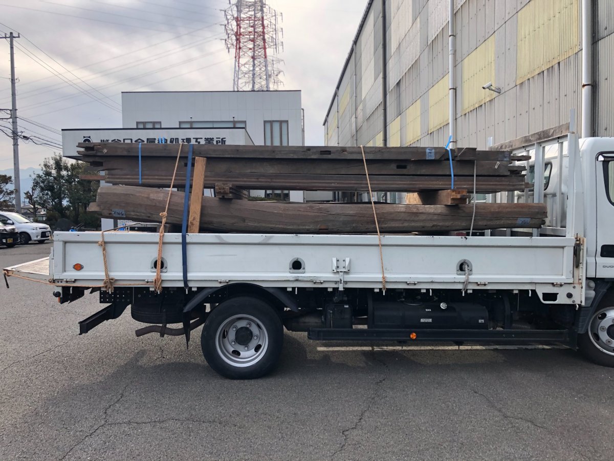 しかし量がすごいので、弊社製造チームを引き連れ計5名の「古材引き上げ隊」を編成しまして、トラック2台でいざ出陣!