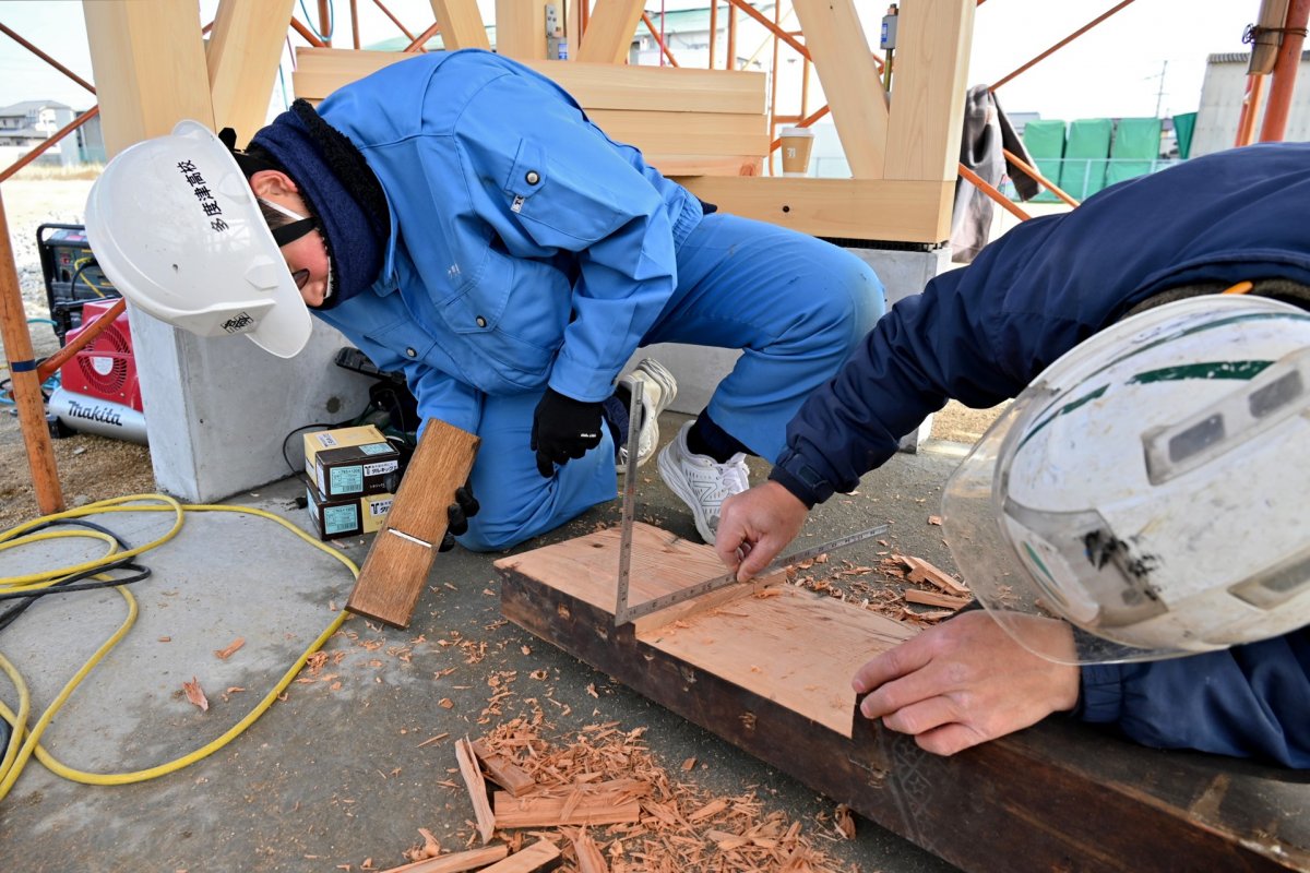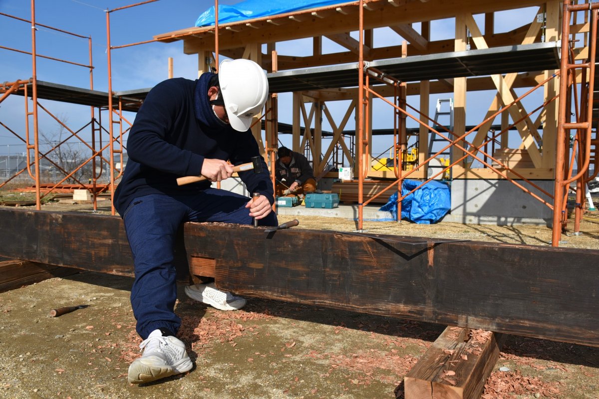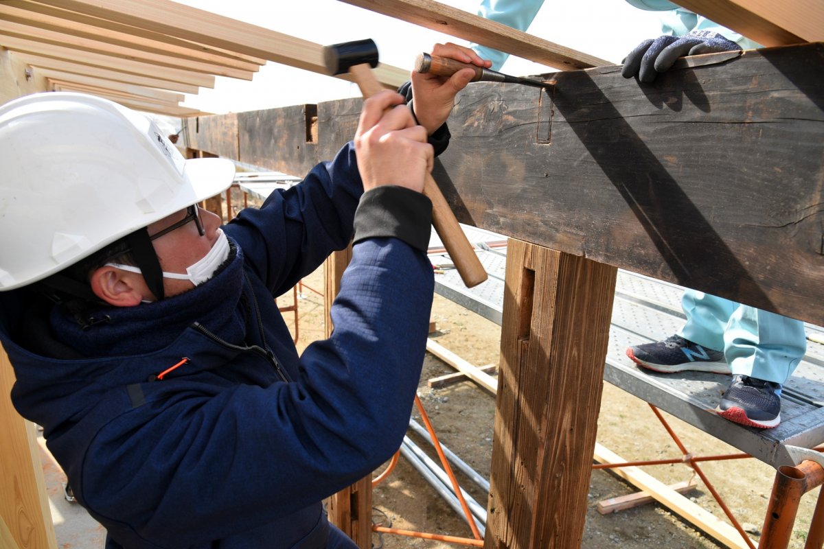 最近はプレカットという機械で刻むので、古材を手作業で刻む高校生なんて、日本でここだけっ!??
