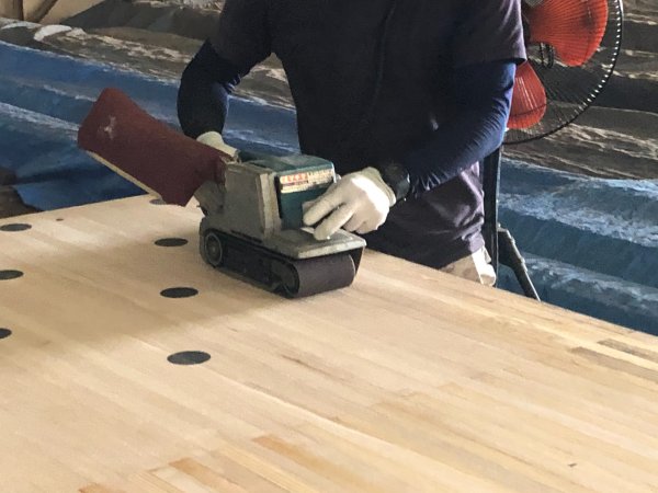 約50年前のボウリングレーンのGETしたのですが表面塗装が剥がれてボロボロだった為