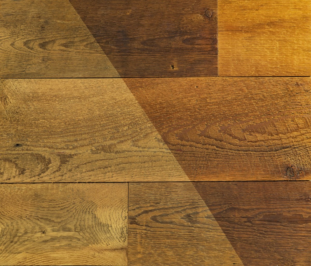 納屋や倉庫の内部から採取された古材は、ノコ目跡や当時の風合いが100年以上経過した今でもそのまま保たれており、当時のどこか懐かしい温かみのある素材感がとても人気の板材です。貼りあがった時の存在感は抜群です。古材好きが最後に必ず行きつく商品としても知られています。