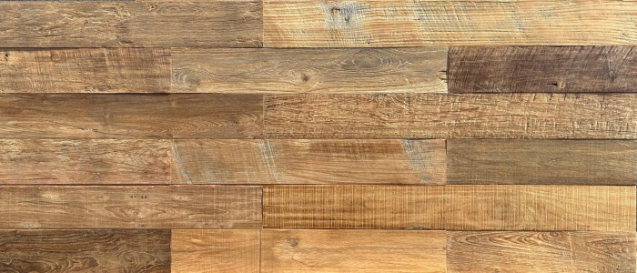 インドネシアの古民家などに使用されていた高級材であるチーク材を再利用して作った商品です。手作業で丹念に磨き上げられたことで、古材特有の凹凸がはっきりと表れると共に高級感ある光沢を放ちます。古材の風合いを十分に醸し出しながらもわずか4.5㎜厚の非常に使い勝手の良い仕上がりとなっており、壁面や什器など様々な用途にご利用いただけます。