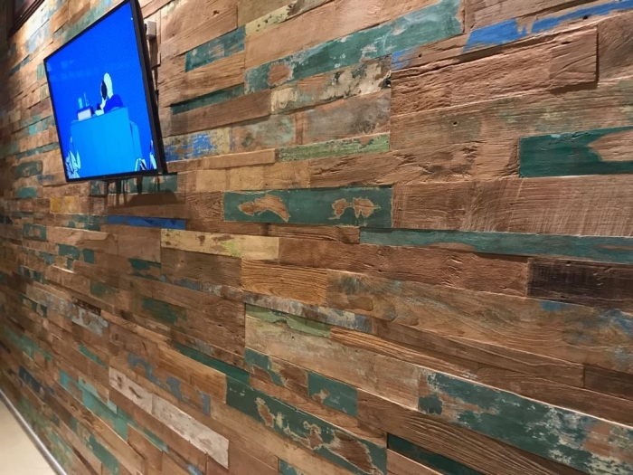 インドネシアの古民家の外壁として使用されていた高級材「チーク」を再利用して製作した商品です。当時の富裕層は住宅を保護する目的で外壁に塗装を施しており、現地特有のカラフルな色合いが特徴です。厚みが薄いため非常に使い易い仕様となっており、壁面や什器など様々な用途にご利用いただけます。