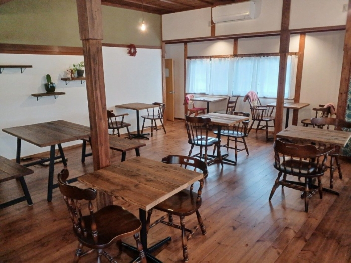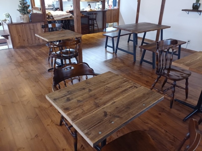 居心地の良いカフェ空間でも古材の存在感は必見です。