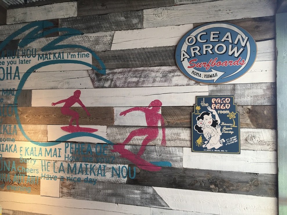 外部のハワイを思わせる鮮やかなブルーにエメラルドグリーンのペイント・・・ これらはお店のイメージで後付されたものですが。