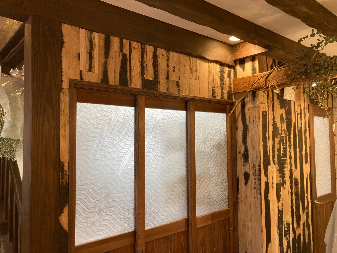 元は時計店だったところを改装したそうで 内装に古材を使って頂きました。