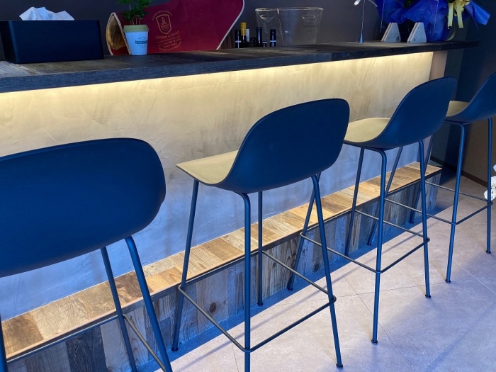 お店のカウンター周りとカウンター下の足置き部分に「レイクボード」を使って頂きました♪