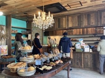 テーブルには焼き立てのパンが並び 次々お客さんが来るので写真を撮るのも一苦労・・