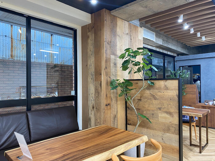 店内の壁面にUSボードブラウンを採用頂いております。