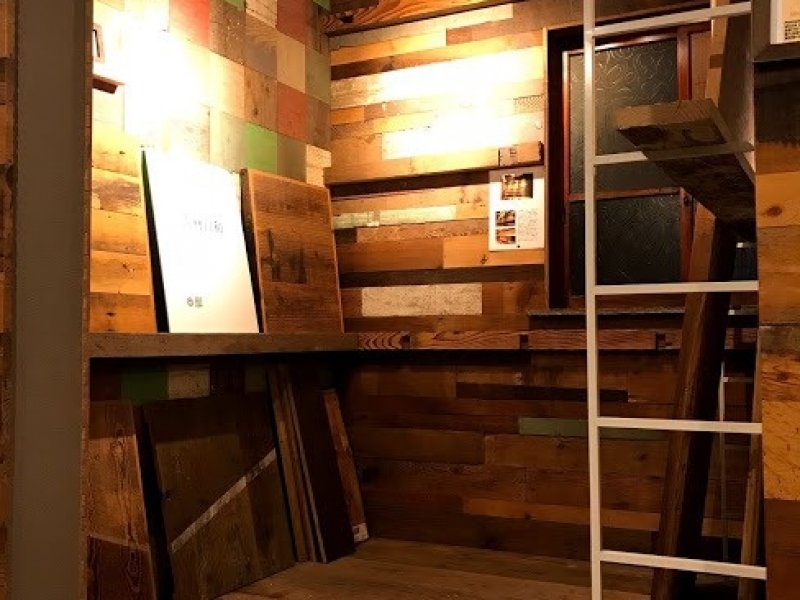 古材現物では分かりにくい使用イメージを確認できます。これから店舗、住宅に古材を使いたいという方の打ち合わせや 、古材を使ってみたいという個人の方の要望にも対応いたしますので、ご来店お待ちしております。