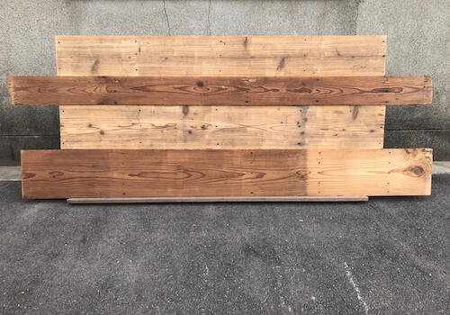 上品で滑らかな質感と落ち着いた表情が特徴の国産古材板です。樹種はやわらかな風合いの針葉樹(杉・マツ等)高級感あふれる広葉樹(ケヤキ・クリ等)がございます。