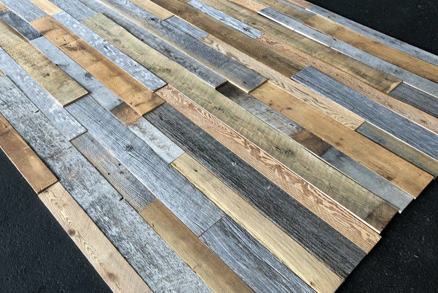輸入古材の中から代表的な3種 USボードグレー・USボードブラウン・グレーボードをメインにミックスしました。