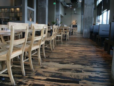 競走馬の牧場用フェンスとして真っ黒に塗装され使用されていた耐久性のあるオークの材の中から、良材のみを選定し仕上げました。真っ黒な塗装面と、僅かに表面を削り取ることで現れた木肌面の白黒の対比がとてもユニークで、空間にインパクトを与えることができる素材です。