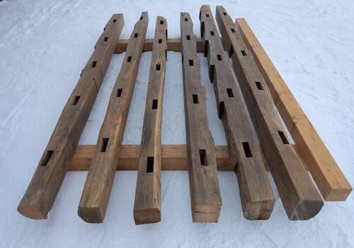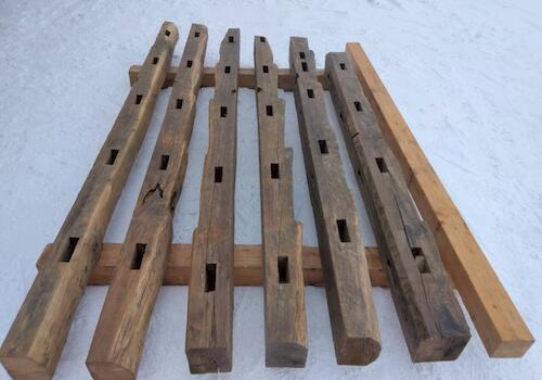 主に梁材として活用されていた角材は、扱いやすく安定した人気をもつ素材です。雪国で採取される巨大なものから温暖な地域で採取される細めのものまで、大きさは様々で、皆様のご要望に応じてアレンジしていきます。また製材(カット)による寸法調整や加工を行うことで、より一層使い安いアイテムへ変化させていくことも可能です。