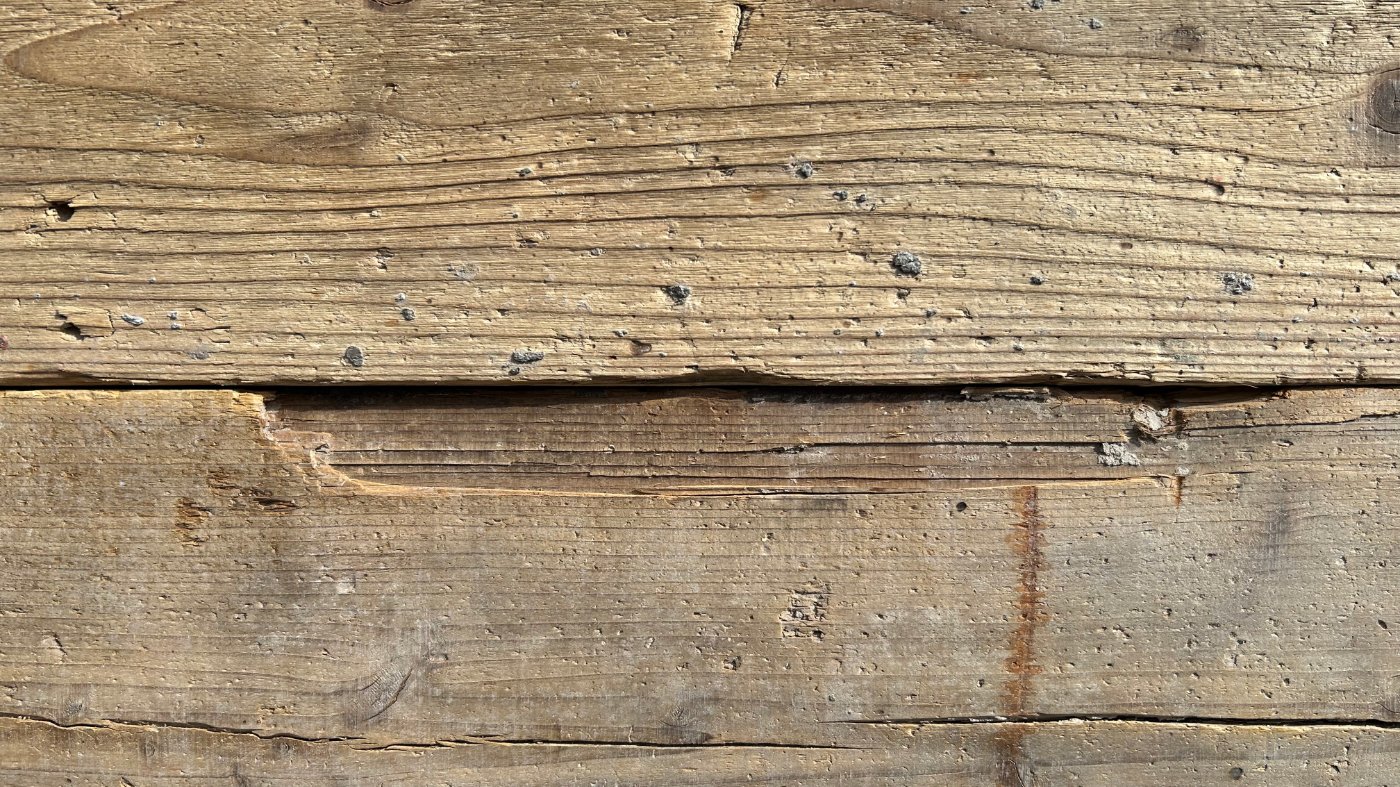 建築現場の足場材として使われた古材。ペンキ・錆・傷跡などが特徴です。