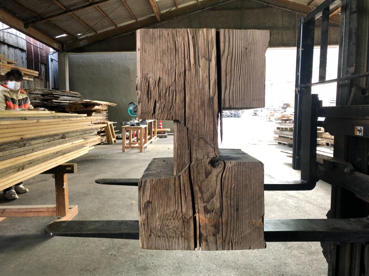 ⑤USビーム(北米の梁材)手斧(ハンドヒューン)の跡が入っている
