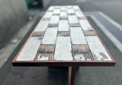 オーク古材の表面からわずかに内部に入った部分を使用し、古材感を残しつつも上品に仕上げました。木目を浮き立たせ、さらにサンディング処理でなめらかさを持たせることにより古材でありながら手触りの良いフローリング材です。