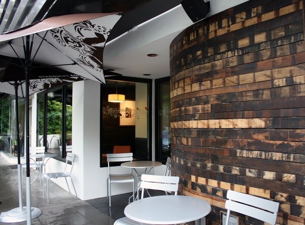 熱帯広葉樹の混合材に深く刻まれた長い航海の証が、個性的で大胆な模様を作り出します。
