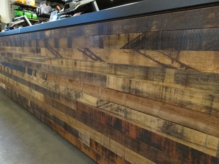 世界中を行き来する海上貨物用コンテナーの床板に使用されていた素材です。