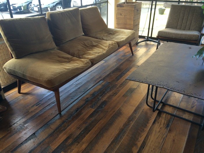 アメリカ北東部の古い建物や工場で使用されていた多種な広葉樹を加工しフローリング材に仕上げました。