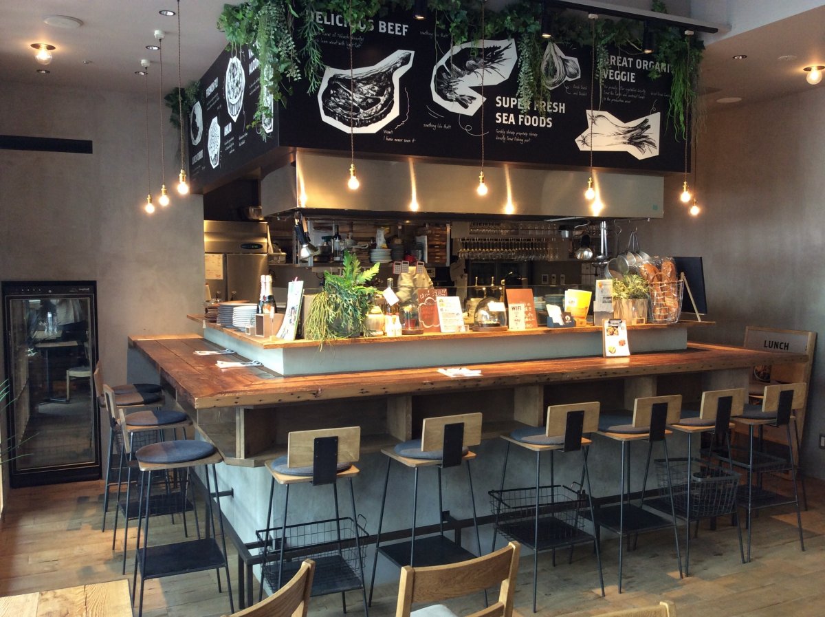 こちらの Bistro BON tabloid table には、USボード2インチとUSボードブラウンをカウンター天板・テーブル天板にご利用していただきました。