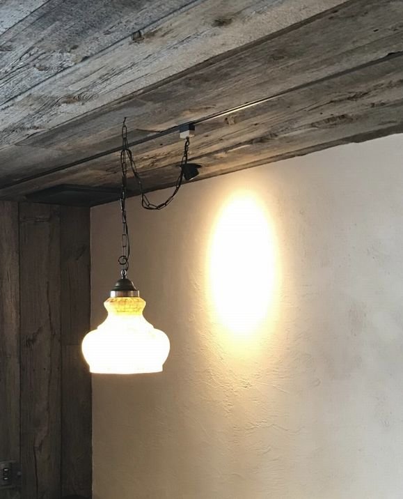 深い木目が特徴のUSボードグレーが おしゃれなチャイニーズレストランの天井・壁に