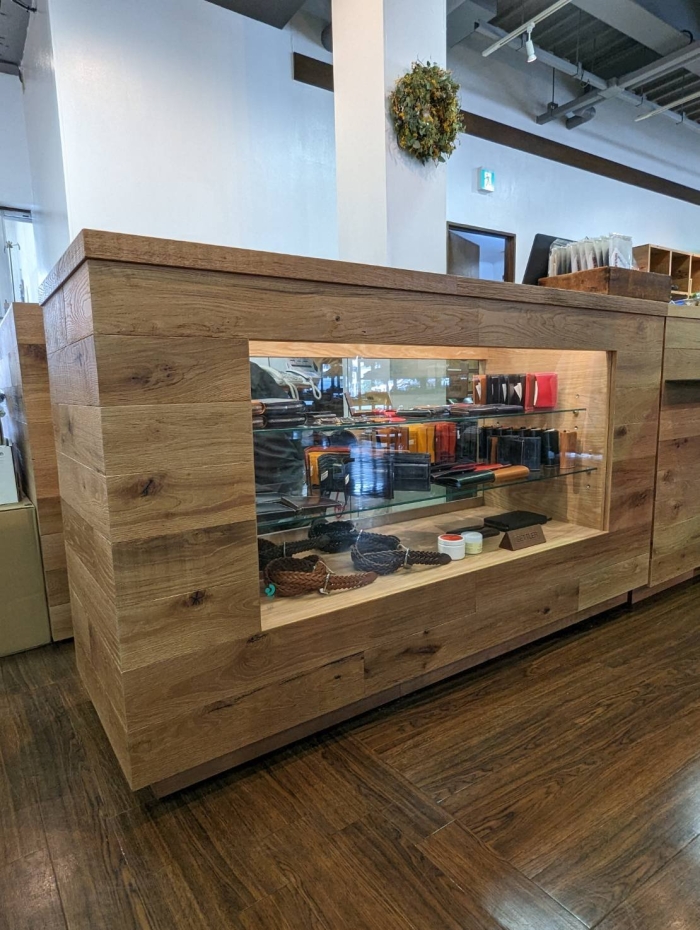 オーク古材の表面からわずかに内部に入った部分を使用し、古材感を残しつつも上品に仕上げました。木目を浮き立たせ、さらにサンディング処理でなめらかさを持たせることにより古材でありながら手触りの良いフローリング材です。