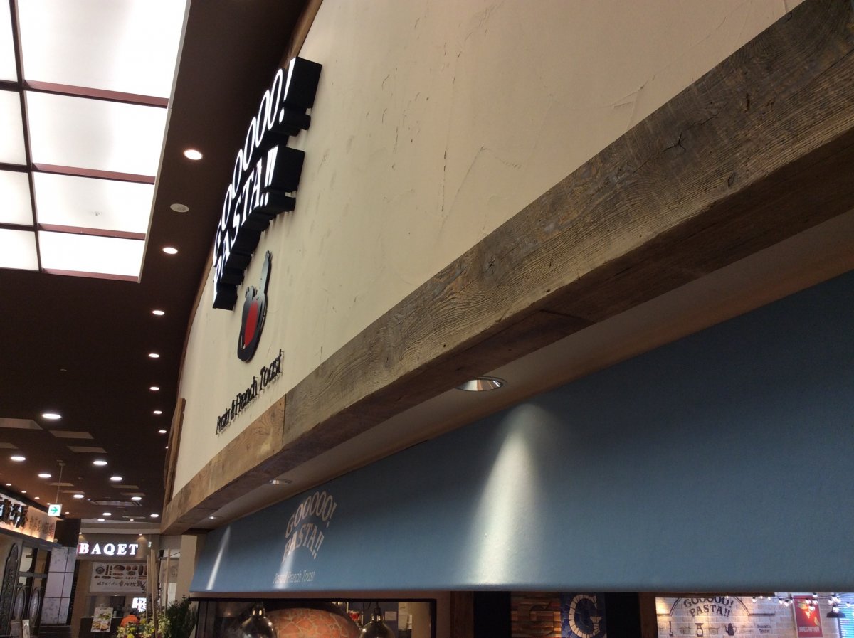 店舗正面と店内サインボードの壁面飾りに USボード ブラウンタイプをご採用いただきました。